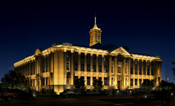像眾所周知的中國(guó)古代建筑的大屋頂坡型物面在樓體夜景照明的表現(xiàn)上通常是一個(gè)比較難處理的部分,受面比較大的原因是一方面,另外一方面是如何個(gè)立面進(jìn)行一個(gè)有機(jī)的結(jié)合,讓整體照明更具有觀賞性,更為協(xié)調(diào)統(tǒng)一。目前大部分的古代建筑夜景照明項(xiàng)目上都采用了泛光照明的方式,我們?cè)谏弦黄谖恼轮芯吞峒斑^泛光照明的手法,那這種照明方式能所面臨的問題是燈具的安裝位置和照明效果的理想程度。試想一下,如果將燈具安裝在建筑物的表面上,如果是小型的燈具還比較隱藏,可以不被人們所注意,但是如果照明對(duì)象是比較寬深的屋面上,可能就需要用大功率的燈具,一般來說大功率的燈具體量也很大,這不僅會(huì)影響建筑物的景觀完整,也有可能對(duì)建筑結(jié)構(gòu)造成損毀。
