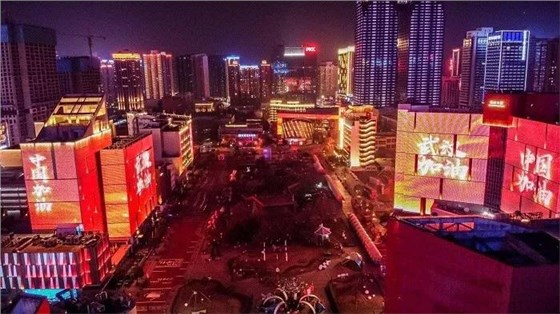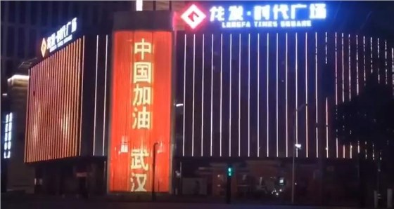 2月10日晚,華燈初上,位于西安高陵的一站式購物中心——龍發時代廣場,一組應援武漢的標語點亮,“武漢加油 中國加油”滾動播出,不僅點亮夜空,更點燃西安廣大市民共同戰勝疫情的信心。