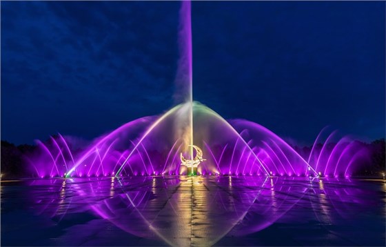 這也是東北地區(qū)首個(gè)大規(guī)模的雙扇噴泉水幕燈光秀。噴泉以女神像為中心,高中噴水泵矩陣排布,最高水柱可達(dá)60米,伴著音樂的動感節(jié)奏和光色的斑斕變化,劃破公園夜空,帶來全新的夜游體驗(yàn)。