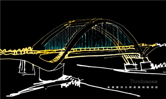 橋體整體為流暢的線條,我們在亮化設(shè)計中選用簡約光色勾勒橋體,用燈光來詮釋橋體的靈魂。光色上用黃色或者淡藍色,在照明時可以通過照明控制系統(tǒng)調(diào)試不同的展示效果,因為展示效果并不復雜,所以控制系統(tǒng)在功能的采用中選擇穩(wěn)定、控制效果單一的即可。