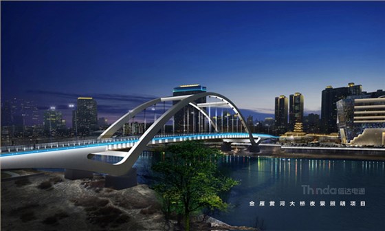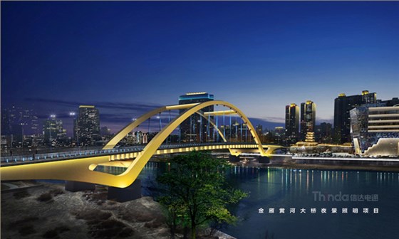 蘭州金雁黃河大橋全長六百多米,形似飄帶,信達電通在設(shè)計中選用黃色或淡藍色的簡約光色進行勾勒,使橋體的線條感在夜間更好的展示,在搭建智控時,信達電通根據(jù)設(shè)計效果選用穩(wěn)定、單一的控制。