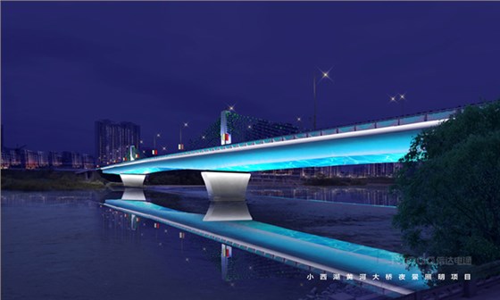 小西湖黃河大橋位于蘭州市七里河區(qū)濱河路黃河風情線中段,夜景提升前,大橋燈具脫落、管線外露,影響大橋形象。照明設(shè)計中,信達采用藍、白等至純純之色,體現(xiàn)橋體的晶瑩剔透,純凈如水,晶瑩如露。
