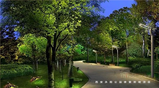 永陽公園的亮化使用綠色智控系統(tǒng)。燈光材料的選擇是根據(jù)被照物的具體情況選用低耗能的LED、EL光源和用紫外線照射發(fā)光的熒光涂料做裝飾照明。