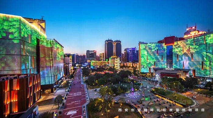 信達電通在2017年完成了眾多大型城市亮化項目,其中濃墨重彩的一筆當屬西安創業咖啡街區的亮化。